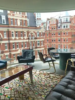 We were given a brief to section off a part of a room to make a more intimate space where the family could listen to and play music. The client wanted to keep a white backdrop so we zoned the room with a Turkish rug, placing Barcelona chairs opposite a piano with a reclaimed 1960’s tombola coffee table at the vortex to bring the conversation space to life. The clients like modernist furniture so the shelving and chairs encapsulated that neoteric feel whilst the fabrics, textures and artwork brought warmth to the space.